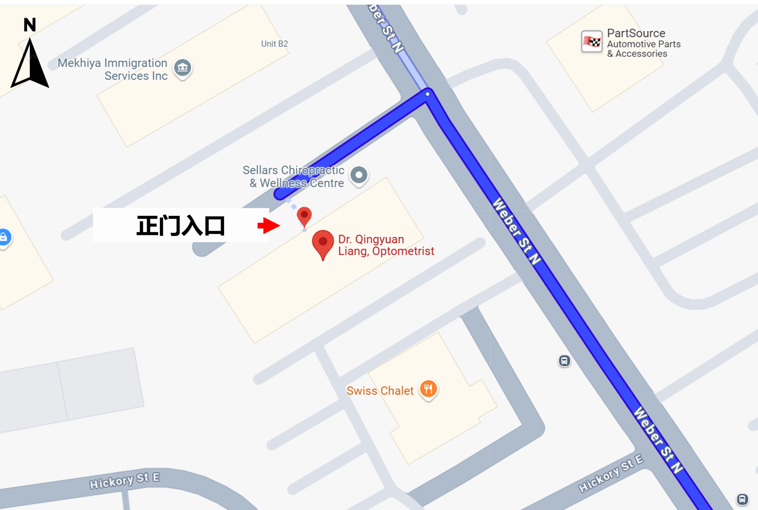 进入大门后,请向右转。我们的诊所位于22号,门上有明显的诊所标识。