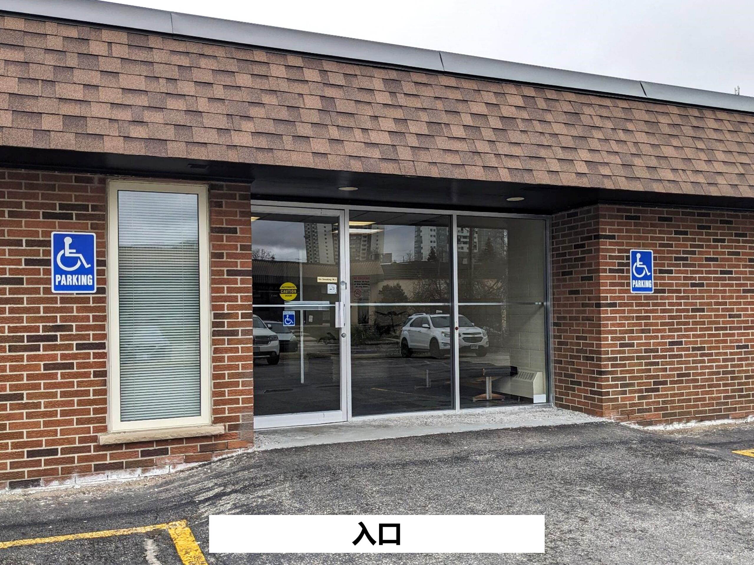 建筑的正门在侧,靠近上半层的停车场。