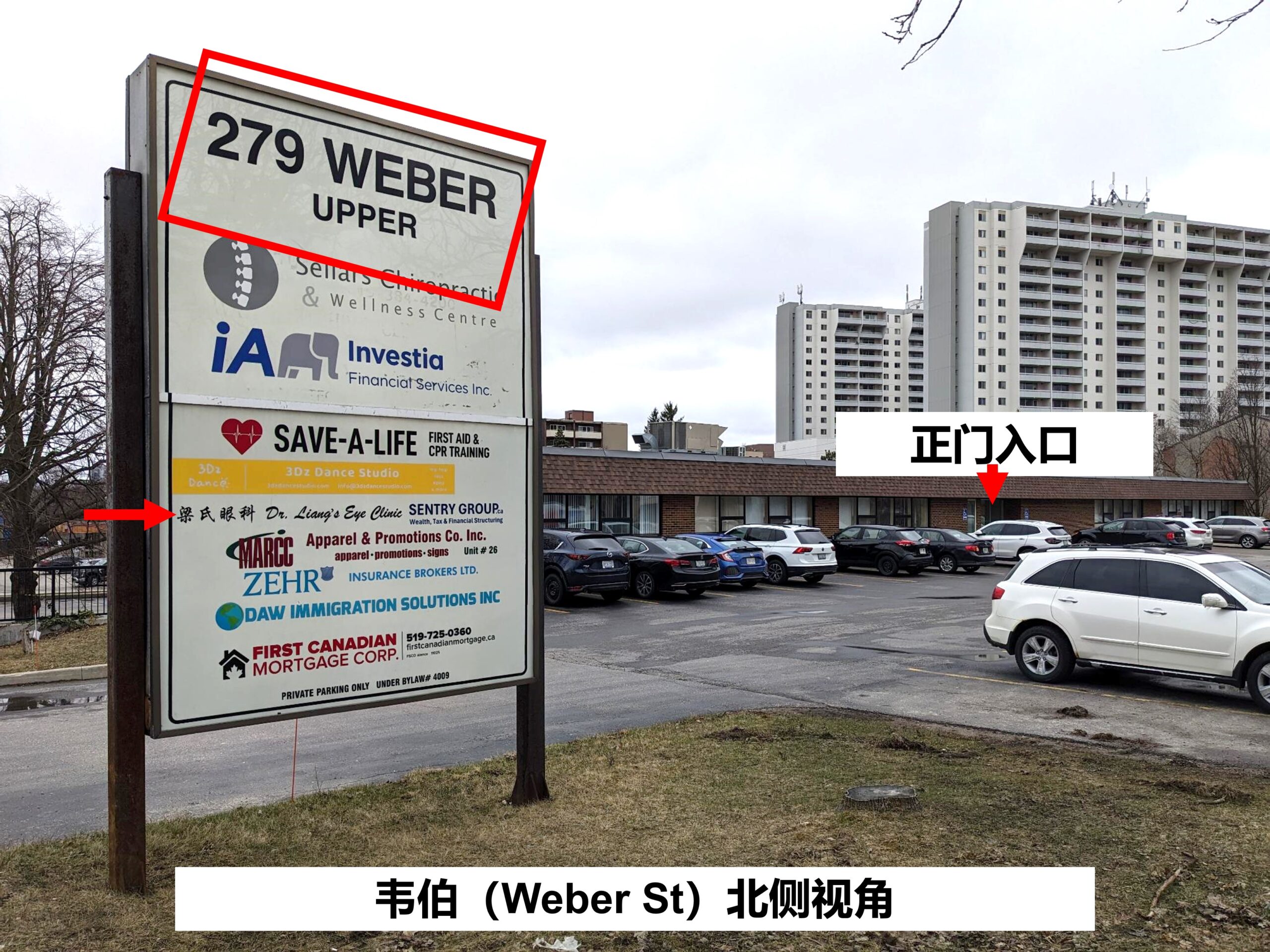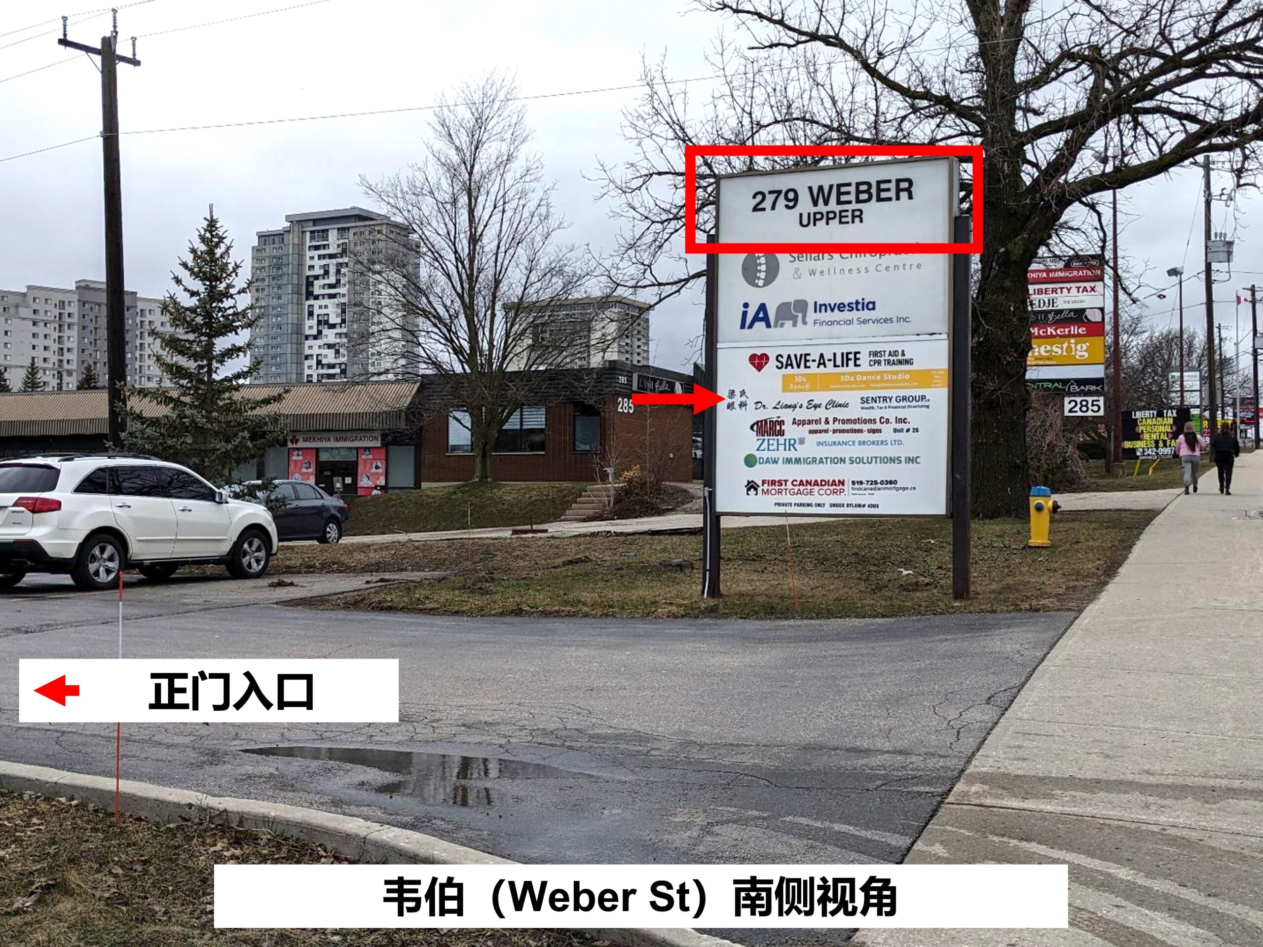 请留意标有 “279 WEBER UPPER” 的指示牌来寻找入口(见下图)。
